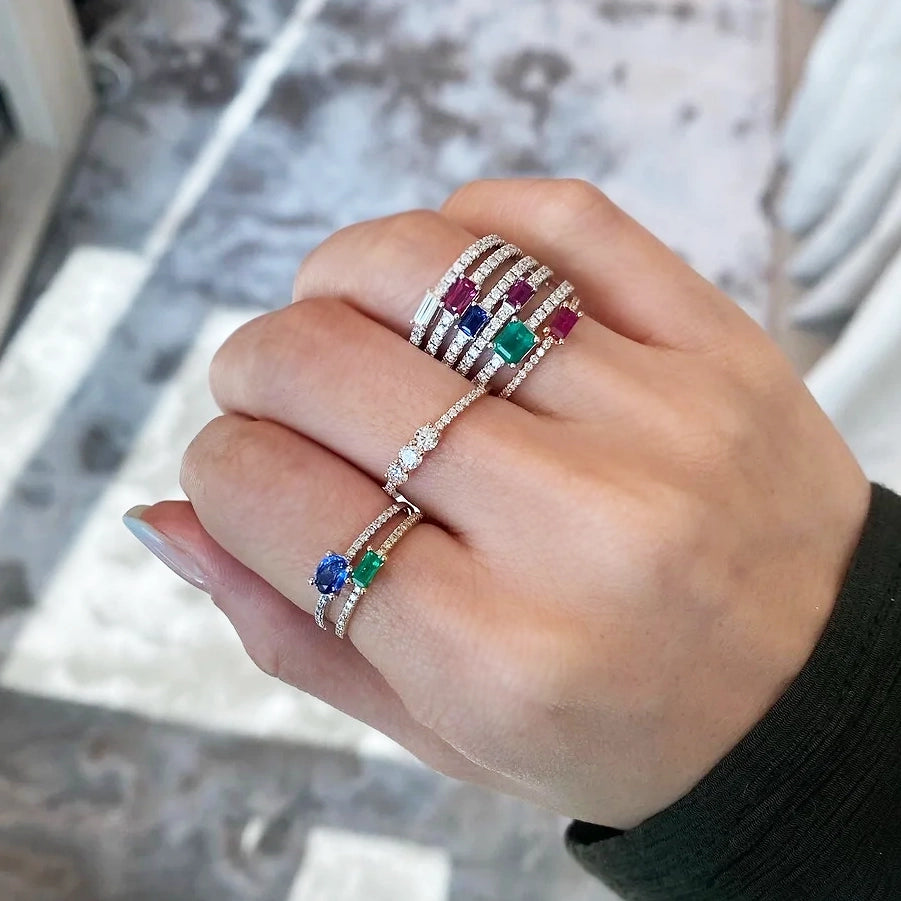 This simple and delicate ring features a horizontal set baguette birthstone that adds a pop of color and extra sparkle to your look.
